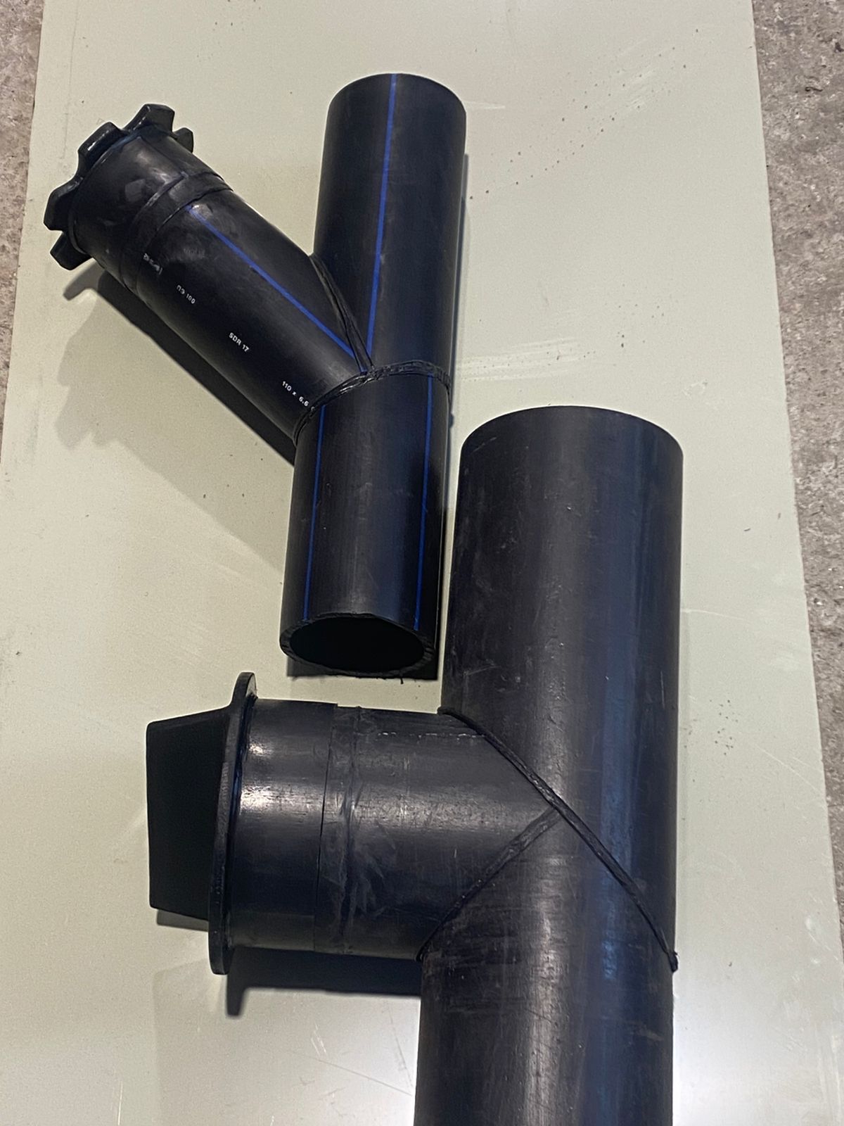Необычную крестовину ПНД 45 градусов и с офланцованным входом изготовил наш завод